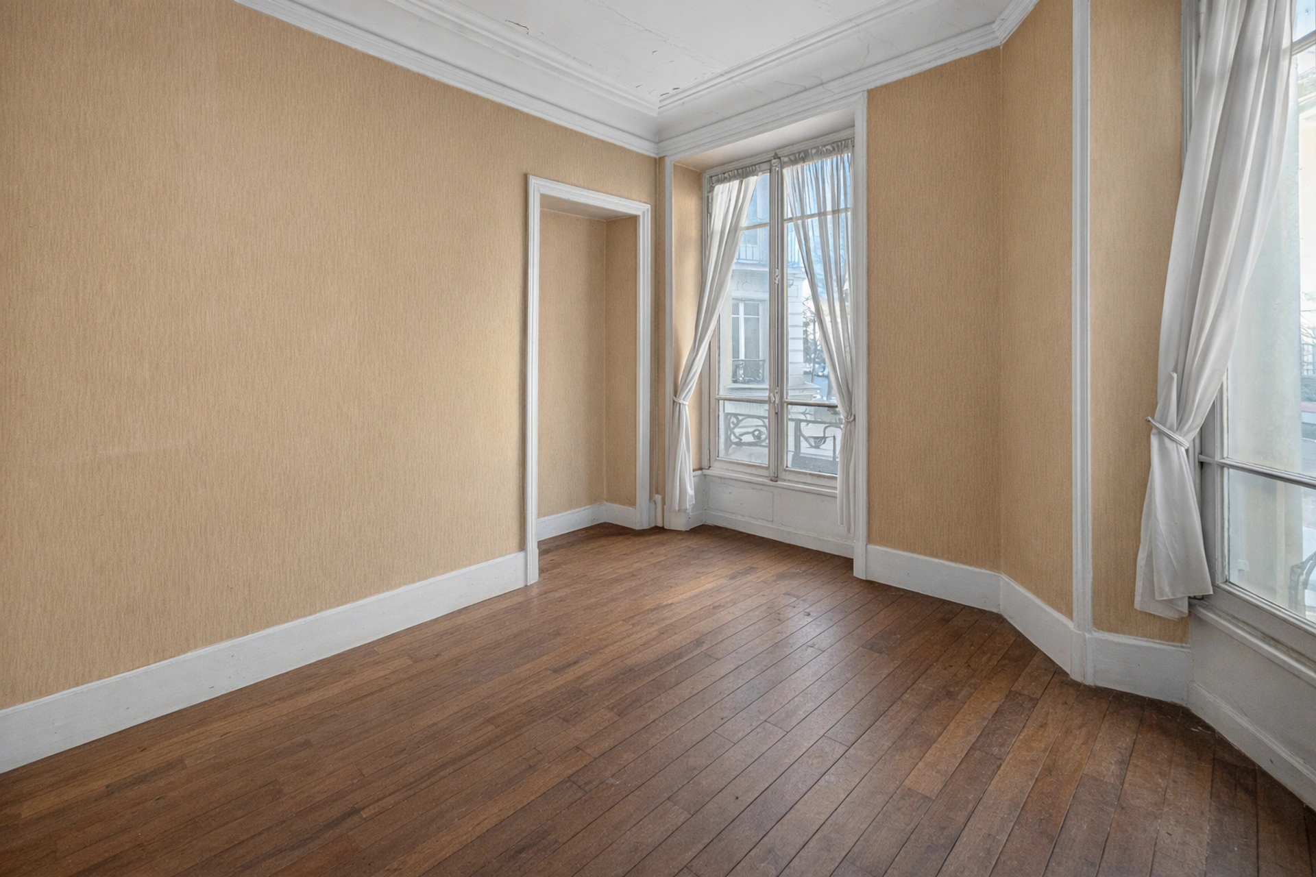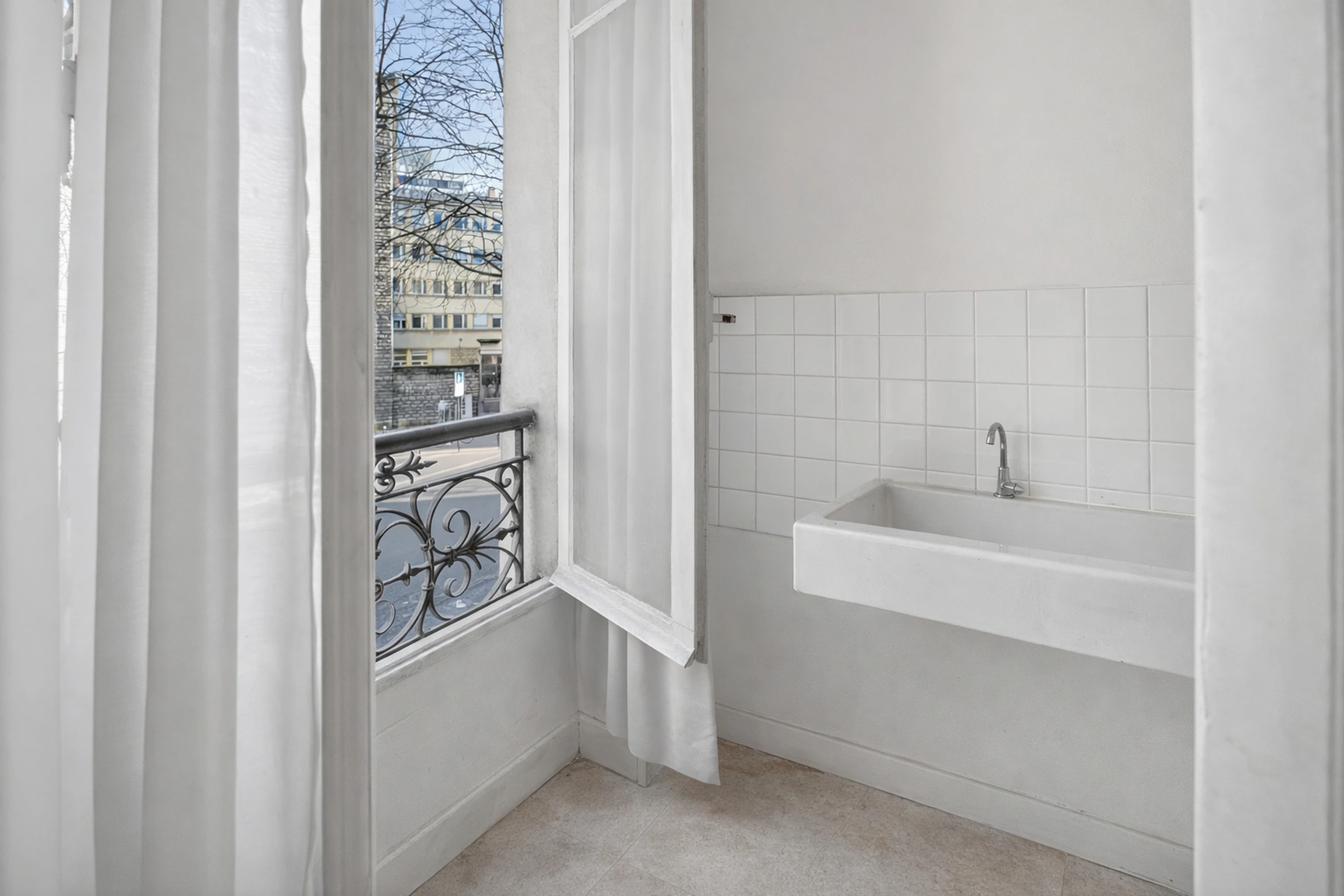 Au 1er étage d'un bel immeuble en pierre de Paris, ce studio bénéficie de 3 grandes fenêtres et d'une très agréable hauteur sous plafond.