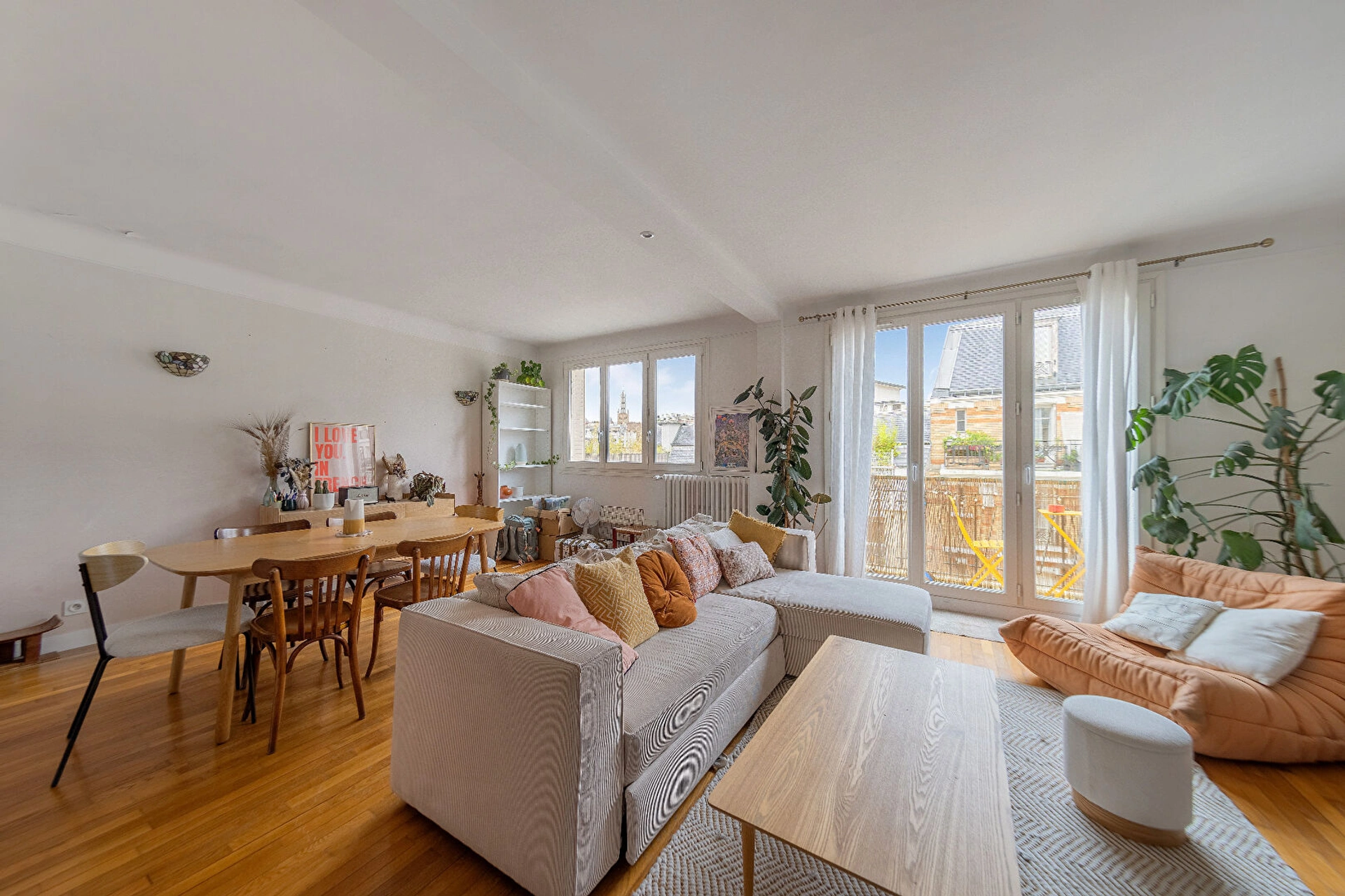 Découvrez au 6eme étage avec ascenseur ce bel appartement traversant et baigné de lumière, en excellent état, d'une superficie de 79,6 m² Carrez, prolongé par un balcon de 6,3 m². Ce bien comprend un séjour spacieux de 38m² ouvert sur une cuisine de 9,63m², facilement transformable en troisième chambre selon vos besoins.